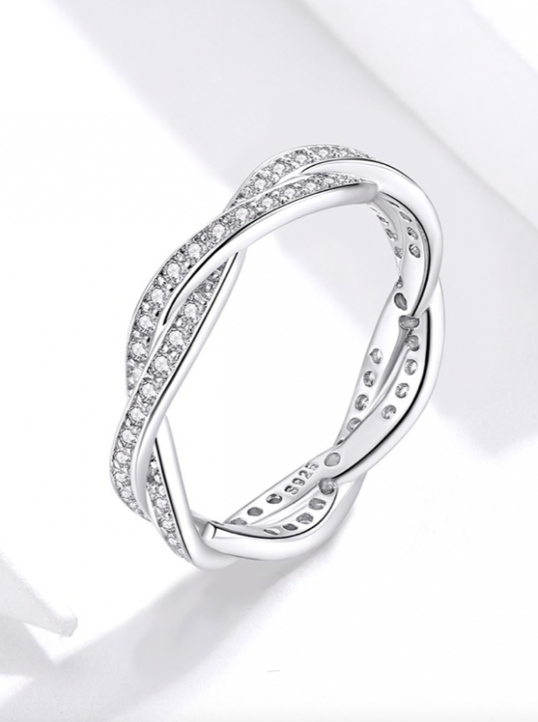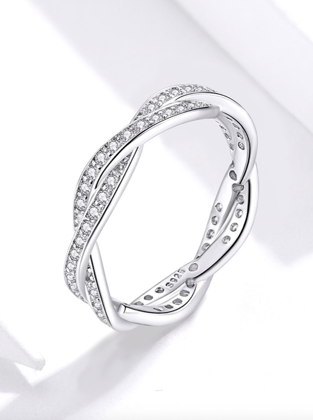 Anello in argento 925 intrecciato con cristalli di zirconia cubica incastonati