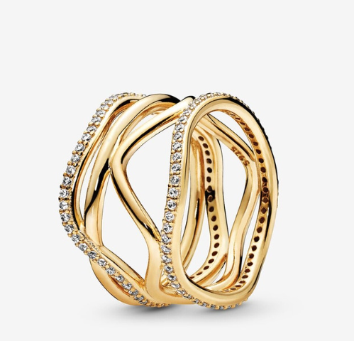 ANELLO ONDE ORO GIALLO CON CRISTALLI