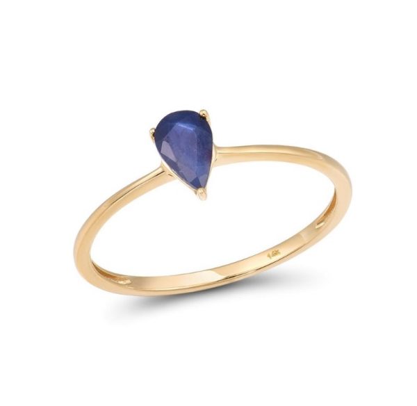 ANELLO ORO GIALLO 14 CARATI CON ZAFFIRO A GOCCIA 0.566cts