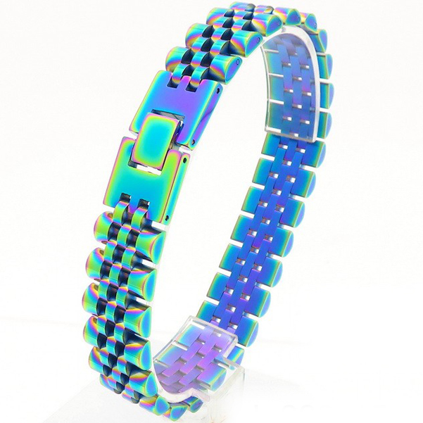 Un bellissimo bracciale modello “catena” come un cinturino stile Rolex, realizzato in Acciaio INOX di alta qualità. Disponibile in diversi colori e dimensioni.