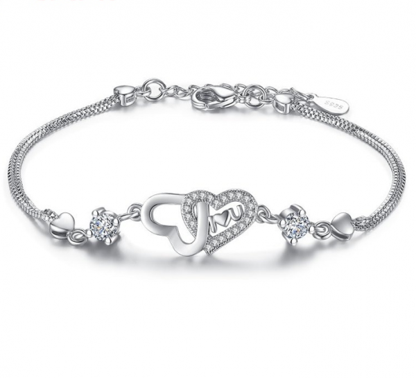 BRACCIALETTO ARGENTO CON CUORI E CRISTALLI DI ZIRCONIA