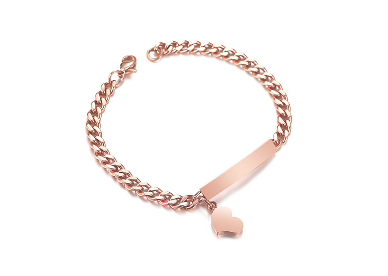 BRACCIALETTO ACCIAIO INOSSIDABILE COLORE ORO ROSA CON TARGHETTA PERSONALIZZATA