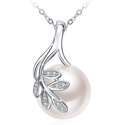 Argento 925, pendente con perla d’acqua dolce di alta qualità e cristalli zirconi.